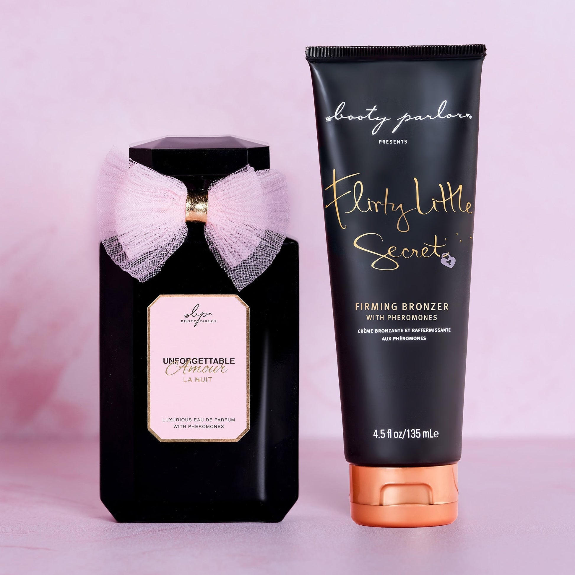 Ignite your allure with Flirty Little Secret Firming Bronzer with Pheromones. This isn't just a bronzer; it's your secret weapon, infused with Booty Parlor's pheromones to elevate your allure.