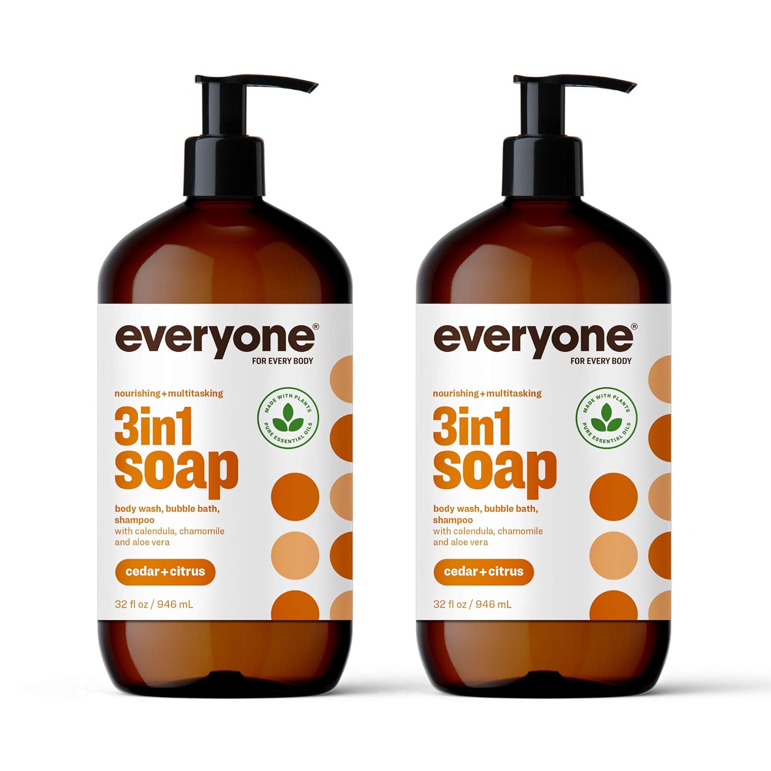 Everyone 3-in-1 Soap, Body Wash, Bubble Bath, Shampoo, 32 Ounce (Pack of 2), Cedar and Citrus, Coconut Cleanser with Organic Plant Extracts and Pure Essential Oils (Packaging May Vary)