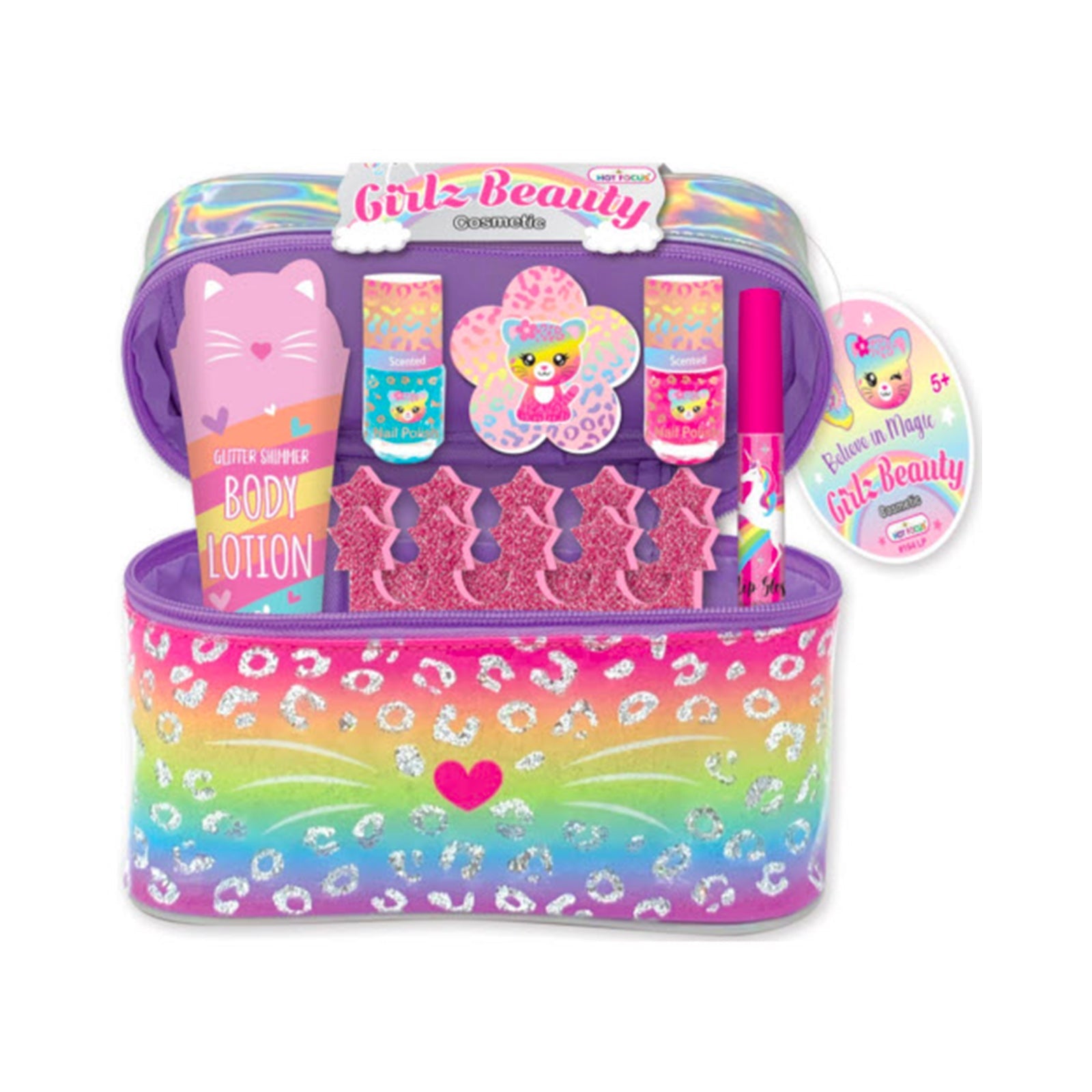Hot Focus Girlz Beauty Cosmetic Bag Leopard Set