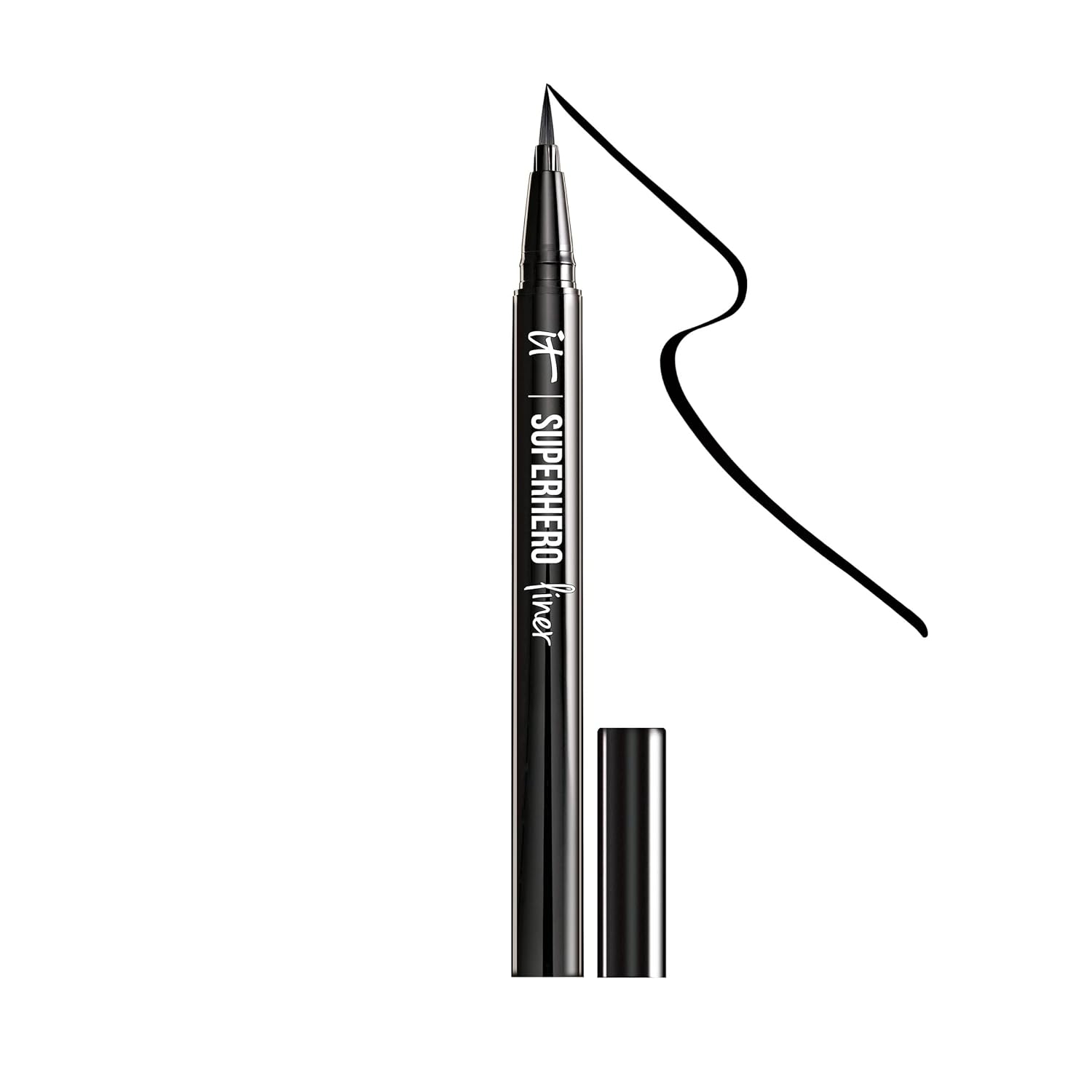 IT Cosmetics Superhero Liquid Eyeliner Pen, Black - 24-Hour Waterproof Formula WonÕt Smudge or Fade - With Peptides, Collagen, Biotin & Kaolin Clay - 0.03 fl oz