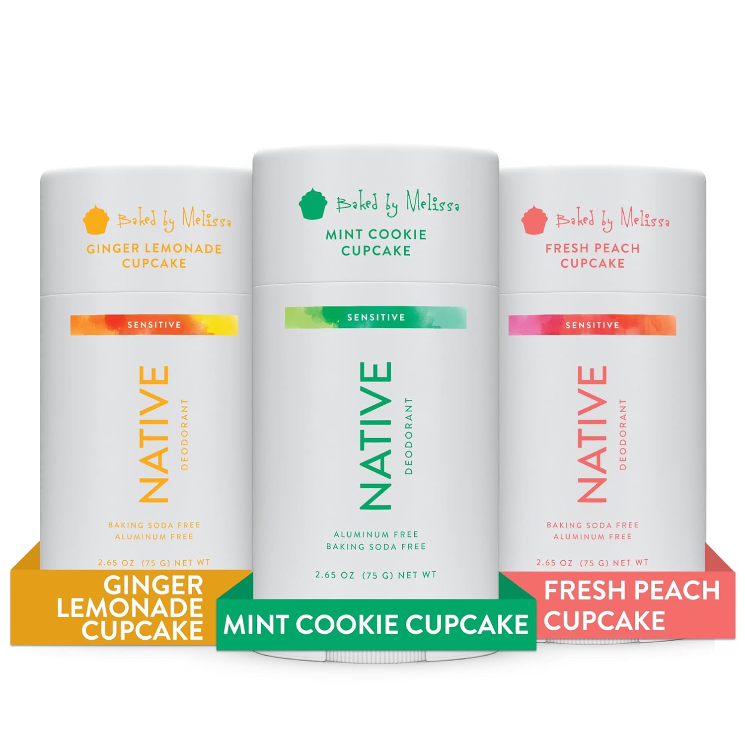 Native Sensitive Natural Deodorant for Women and Men, Aluminum & Baking Soda Free, Phthalate & Talc Free, Coconut Oil & Shea Butter | Mint Cookie, Ginger Lemonade, Fresh Peach Cupcake - Variety 3 Pack