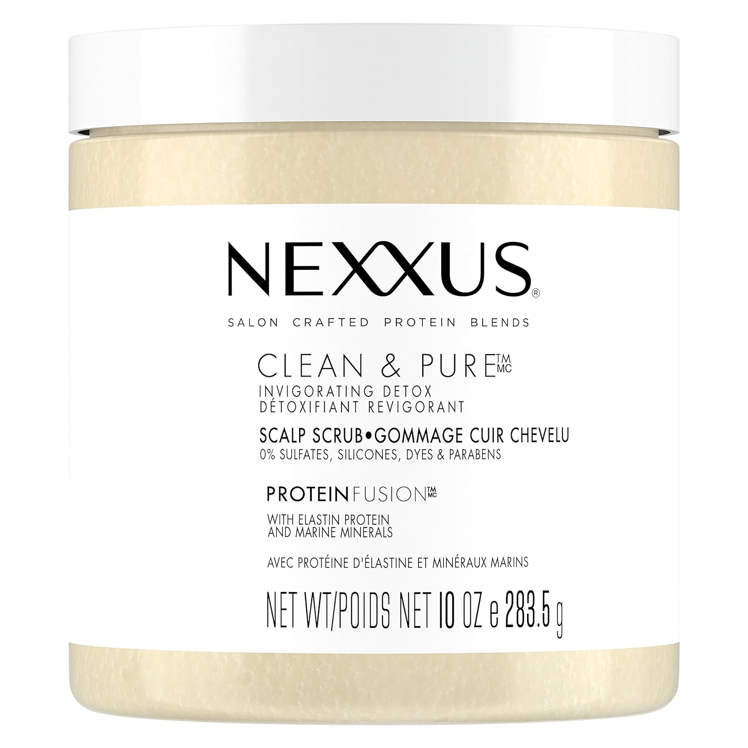 Want deeply nourished hair thatÕs soft, smooth and strong? Discover Nexxus Clean & Pure Scrub Hair Treatment. This scalp & hair scrub will detoxify, nourish and purify your scalp and hair while replenishing its vital nutrients. Inspired by nature, the Nexxus Clean & Pure hair care collection is packed with the power to purify and revive your hair to restore its natural shine. Made with no paraben, dye or silicone, this hair treatment is gentle on your hair and skin. Salon-crafted with our exclusive ProteinFusion blend of elastin protein and marine minerals, this purifying scrub helps replenish, repair, nourish and reawaken hair and scalp. Repairing hair is a multi-step process that includes a combination of hair products. This scrub is a vital part of the regimen for cleansing and exfoliating the scalp to remove build-up. Use once a week or as desired with Nexxus Clean & Pure Moisture Shampoo, Moisture Conditioner, Lightweight Foam Leave-In Conditioner, and Nourishing Detox 5in1 Invisible Hair Oil. Simply place a dollop of the scrub into your palm. Gently work hair product into hands and then massage into a moist scalp until the particles dissolve into a light lather. Mix in a bit of water to spread evenly through scalp and hair. Rinse thoroughly before applying Nexxus Clean and Pure Sulfate-Free Shampoo Scalp Scrub For All Hair Types Treatment Detox Hair Care. Trust your hair and scalp to Nexxus.