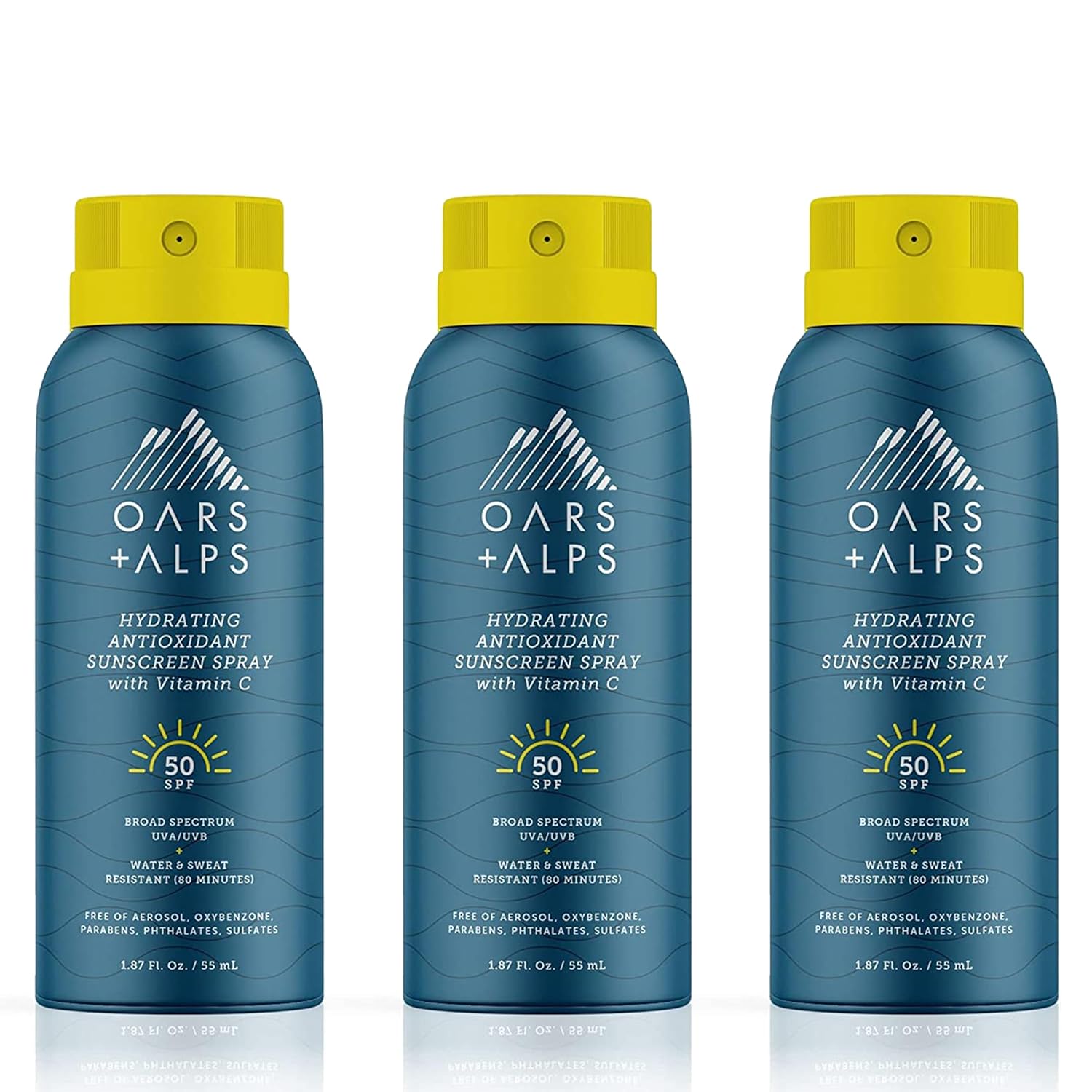 Oars + Alps Hydrating SPF 50 Sunscreen Spray, Infused with Vitamin C and Antioxidants, Water and Sweat Resistant, TSA Friendly, 1.87 Oz Each, 3 Pack