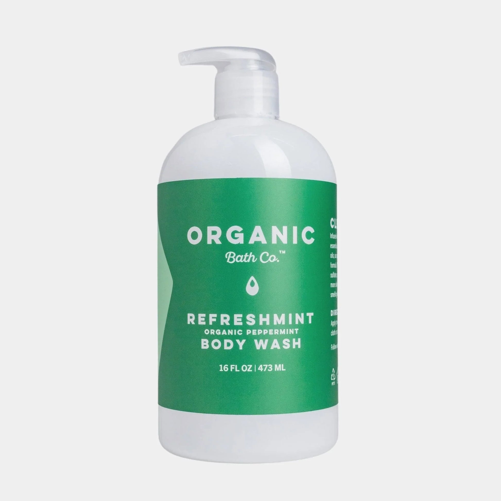 Infused with a blend of incredibly moisturizing plant oils and Peppermint essential oil, Organic Bath Co.'s RefreshMint Organic Body Wash is a luxuriously cool minty-fresh formula that gently and effectively cleanses your whole body.