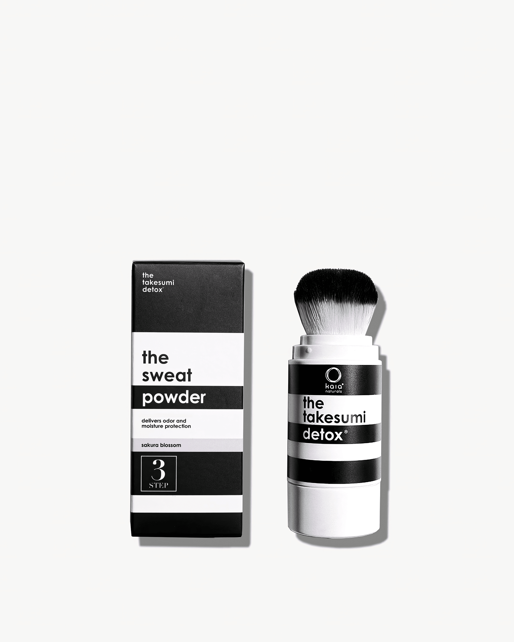 Why We Love It: Inspired by sweat-absorbing athletic chalk used by elite athletes, kaia naturals the takesumi detox® the sweat powder is a talc-free, natural solution for everyday sweaty situations. With a refillable and mess-free brush application system and Thessalite 6® Powder Technology, this product absorbs moisture and manages odor in the underarms, bikini line and breast areas.