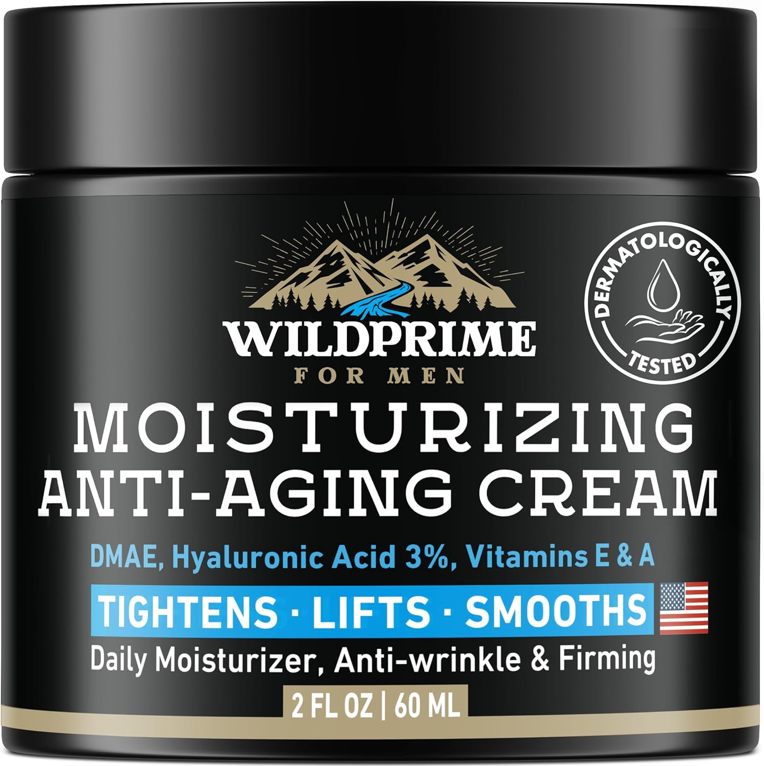 WildPrime Men's Face Moisturizer Cream - Anti Aging & Wrinkle - Collagen, Hyaluronic Acid, Vitamins E & A, Avocado Oil - 2 oz